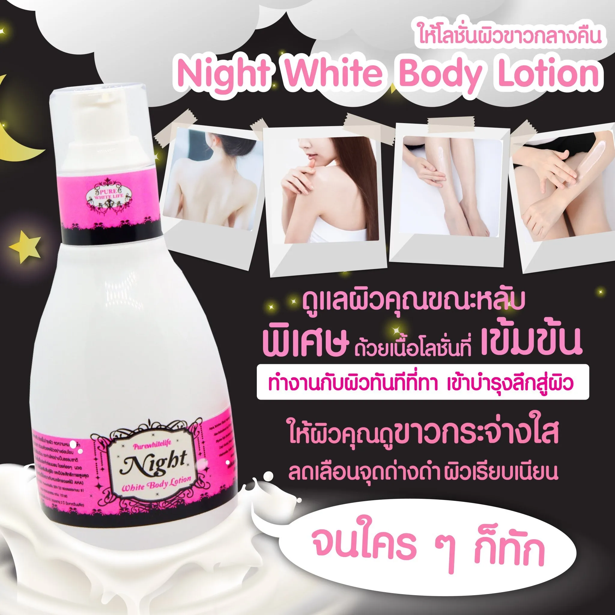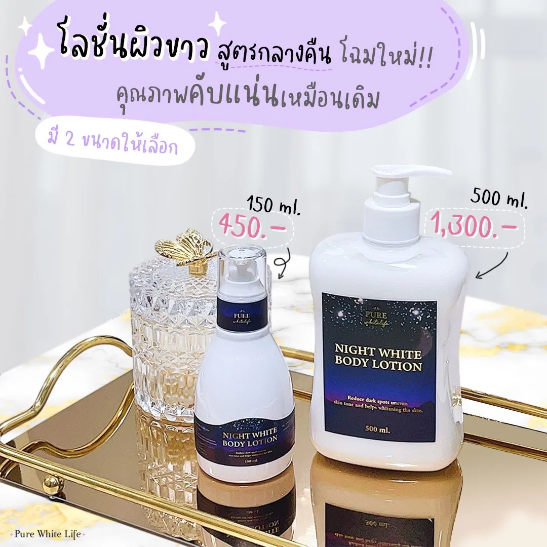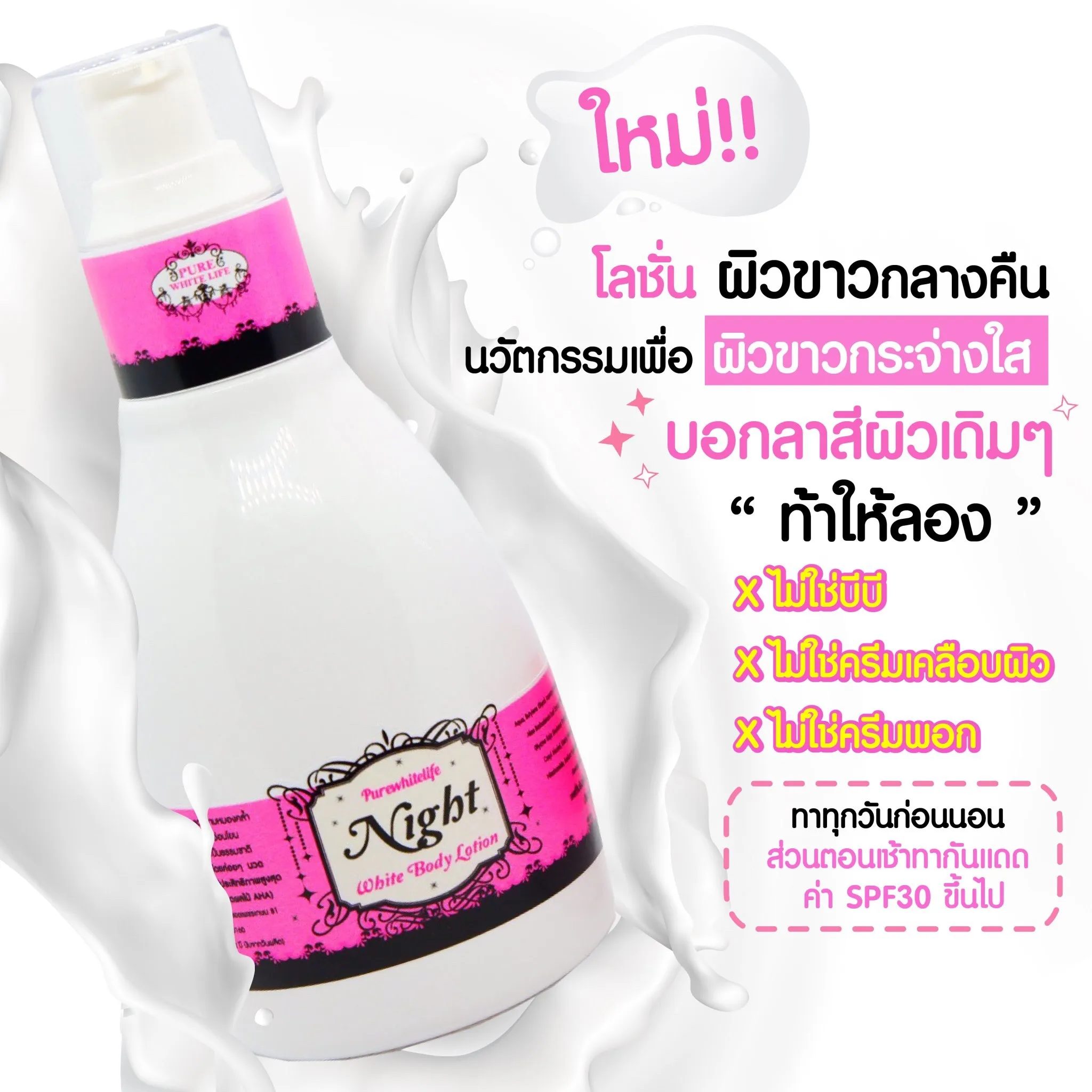 PUREWHITELIFE - NIGHT BODY LOTION โลชั่นผิวขาว โลชั่นบำรุงผิว สูตรกลางคืน (โฉมใหม่) บำรุงผิวก่อนนอน โลชั่นทาก่อนนอน โลชั่นกลางคืน ครีมผิวขาว